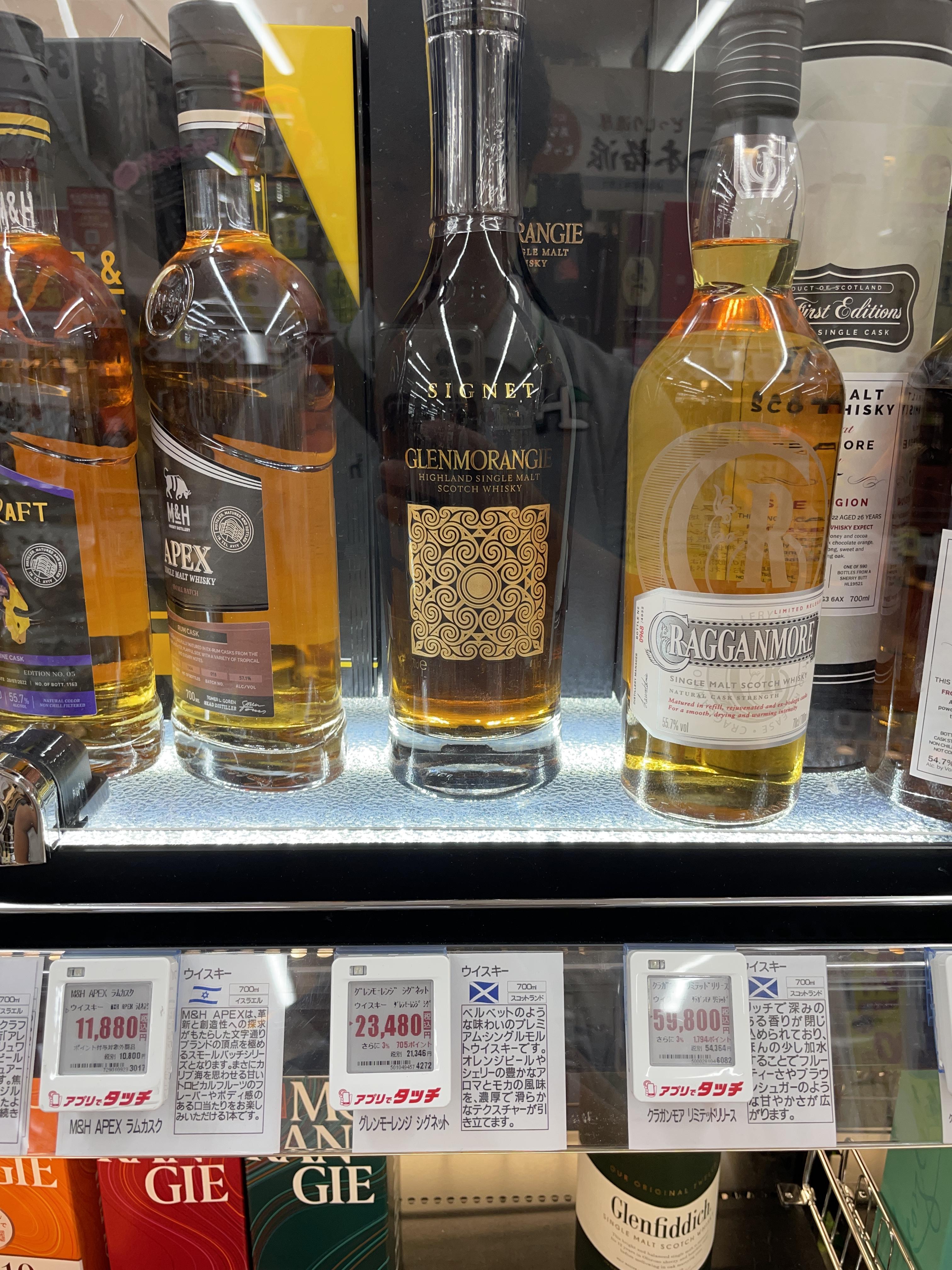 듀어스 25년이 날좀 가져가주슈라는 느낌으로 있지만 바로 옆 진격의 거인 위스키가 눈에 떡하니 보이니 듀어스에 시선이 덜 간다 ㅎㅎㅎ (역시 덕후의 나라) 여러 위스키 장인들이 추천하는 글랜모랜지 시그넷 기존 제고가 다 나가고 새로 수입을 했는지 환율 메리트가 조금 덜하다.