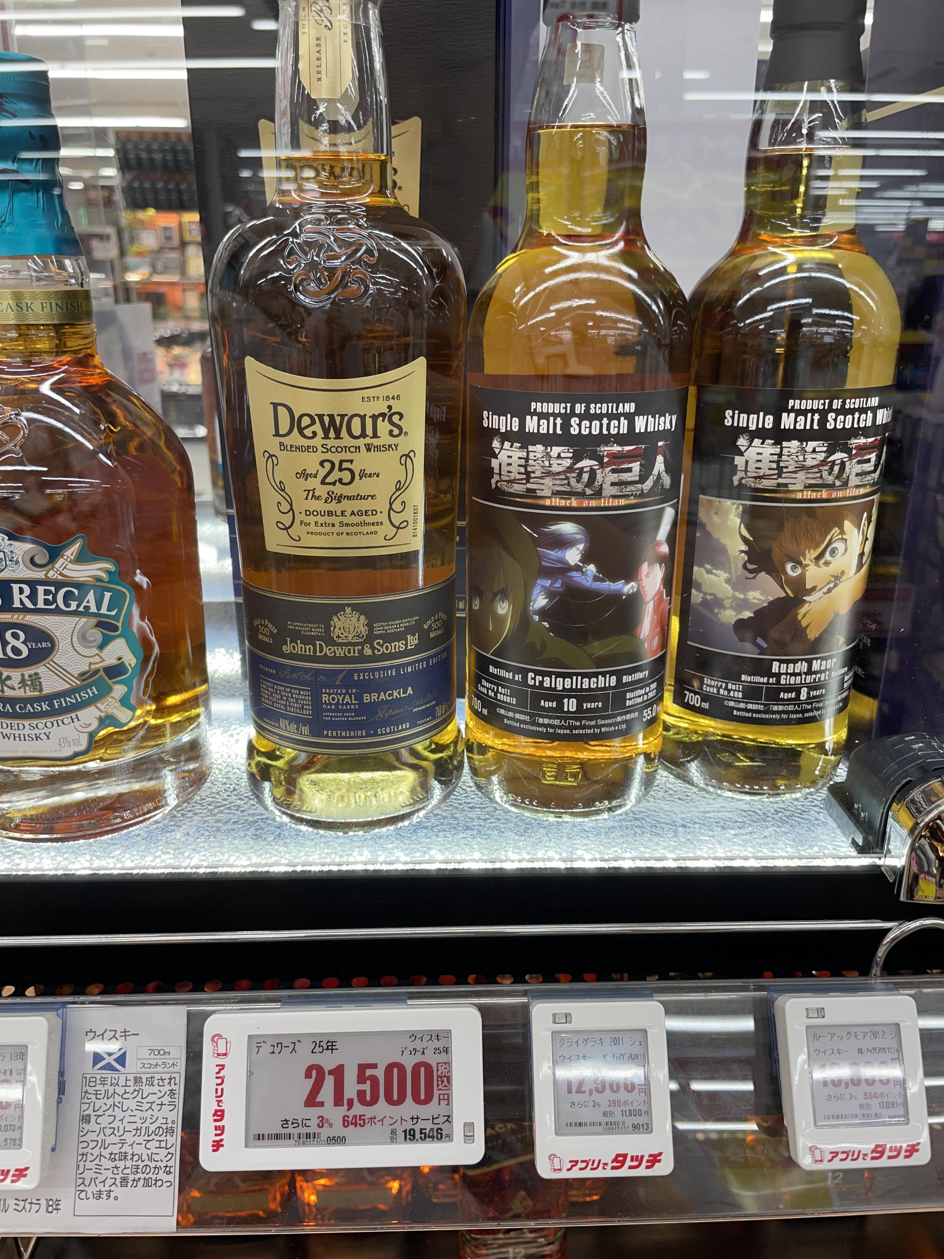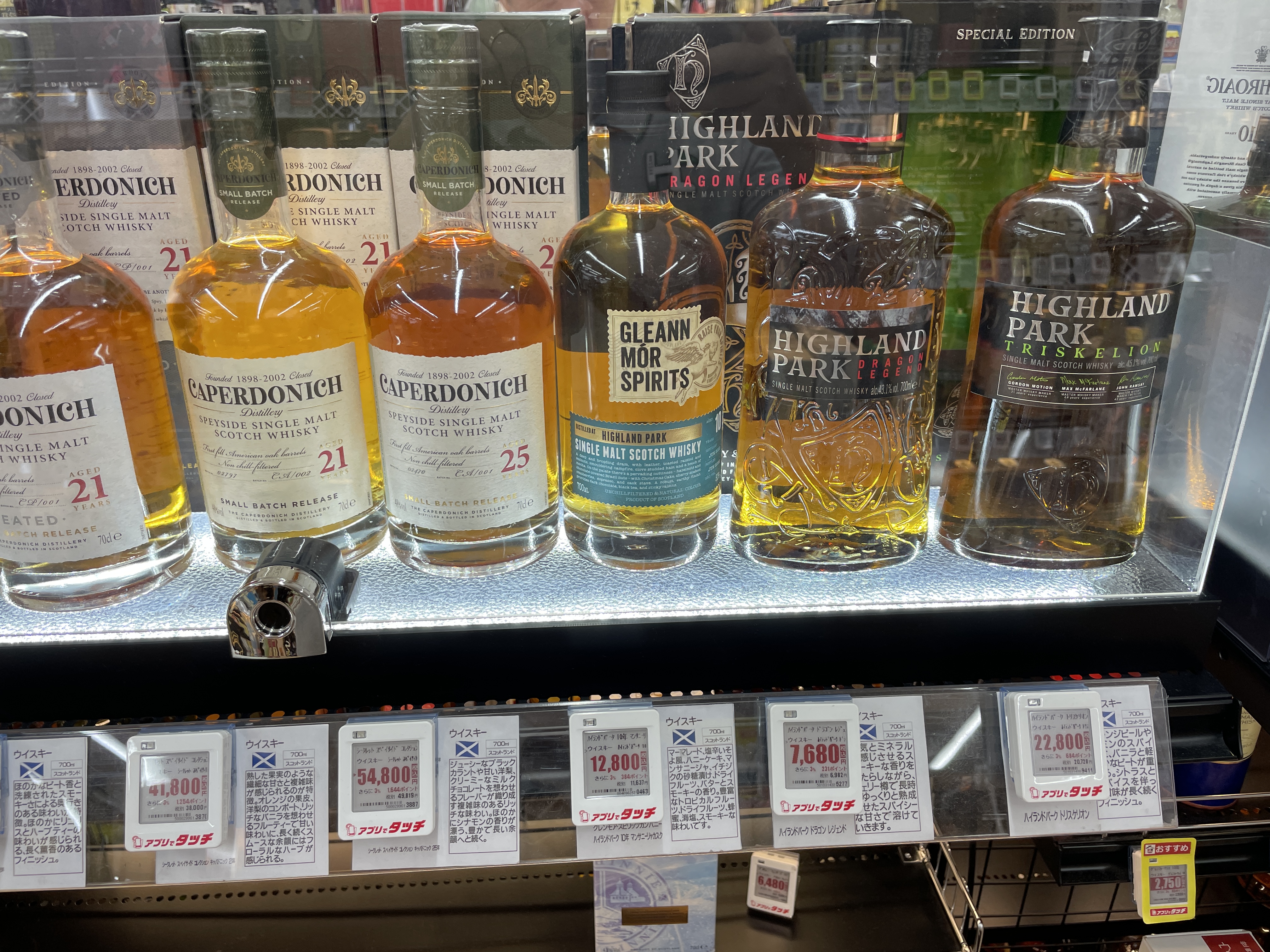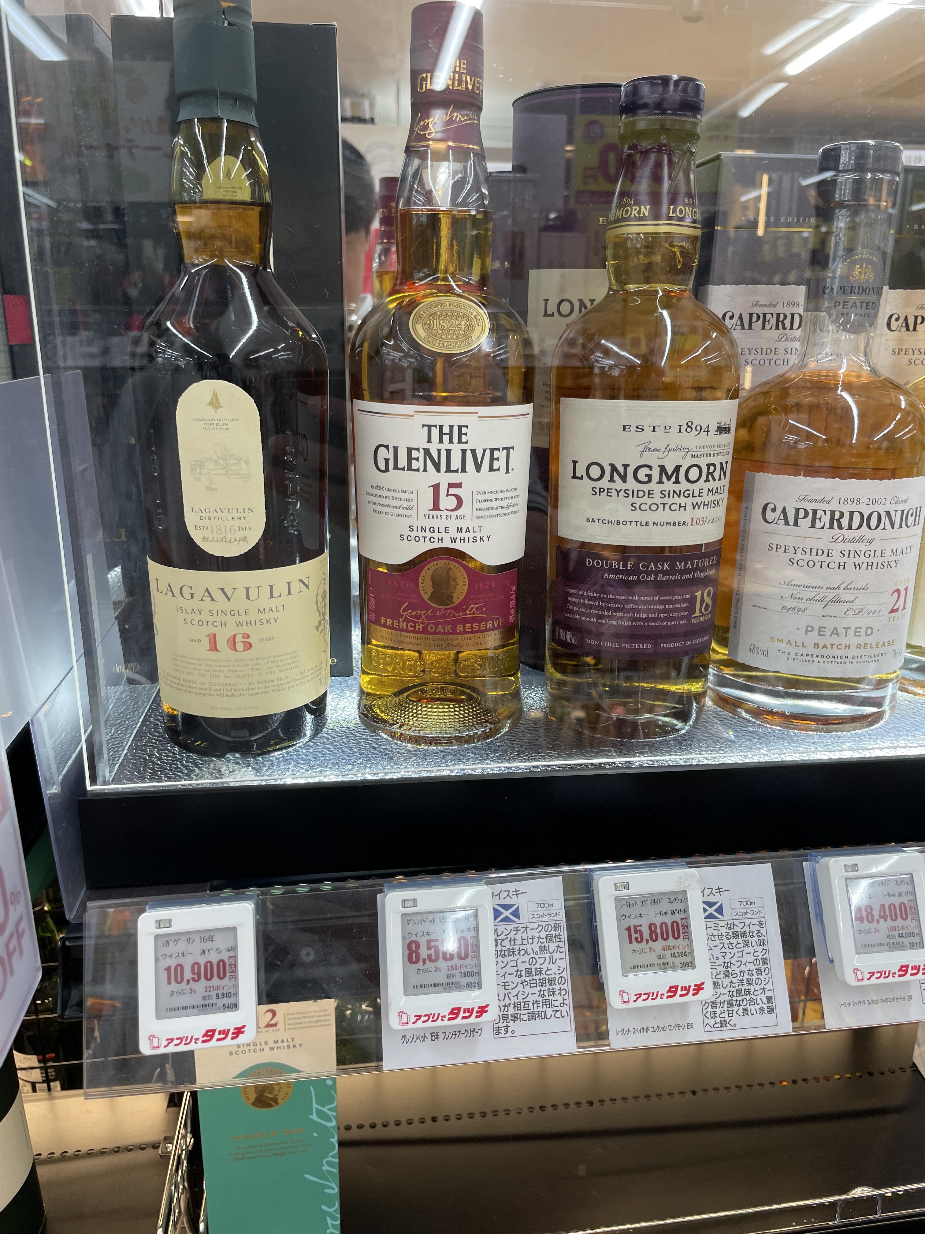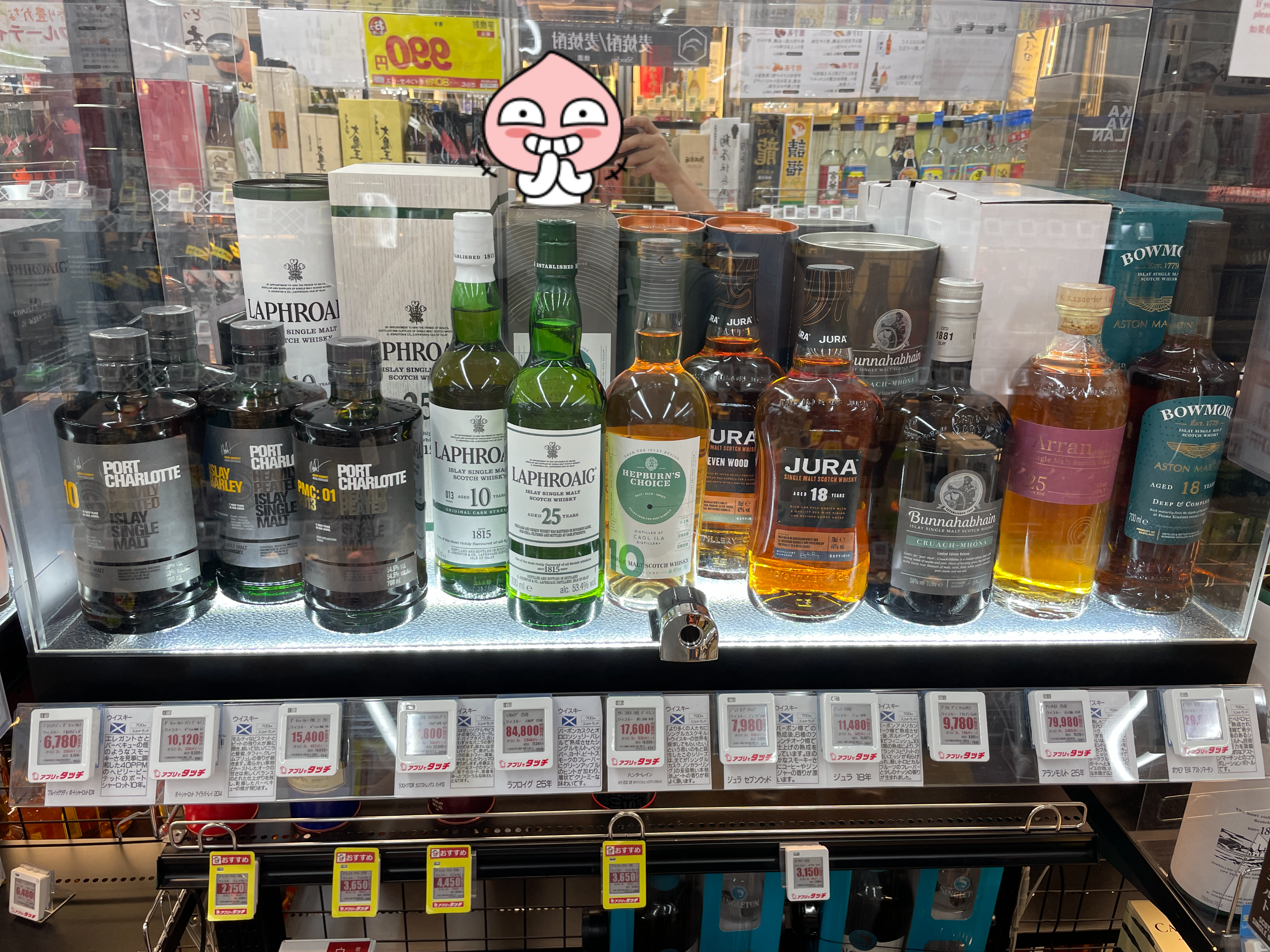 라플로익 10년 CS 배치 13, 25년, 보모어 18년 에스턴마틴 에디션 등이 보인다. 우리나라에서는 아직 많이 알려지지 않은 JURA 18년도 보이는데 18년임에도 10,437엔(면세가, 최근 환율 적용시 약 9만5천원) 탐다는 것이 많이 보인다.