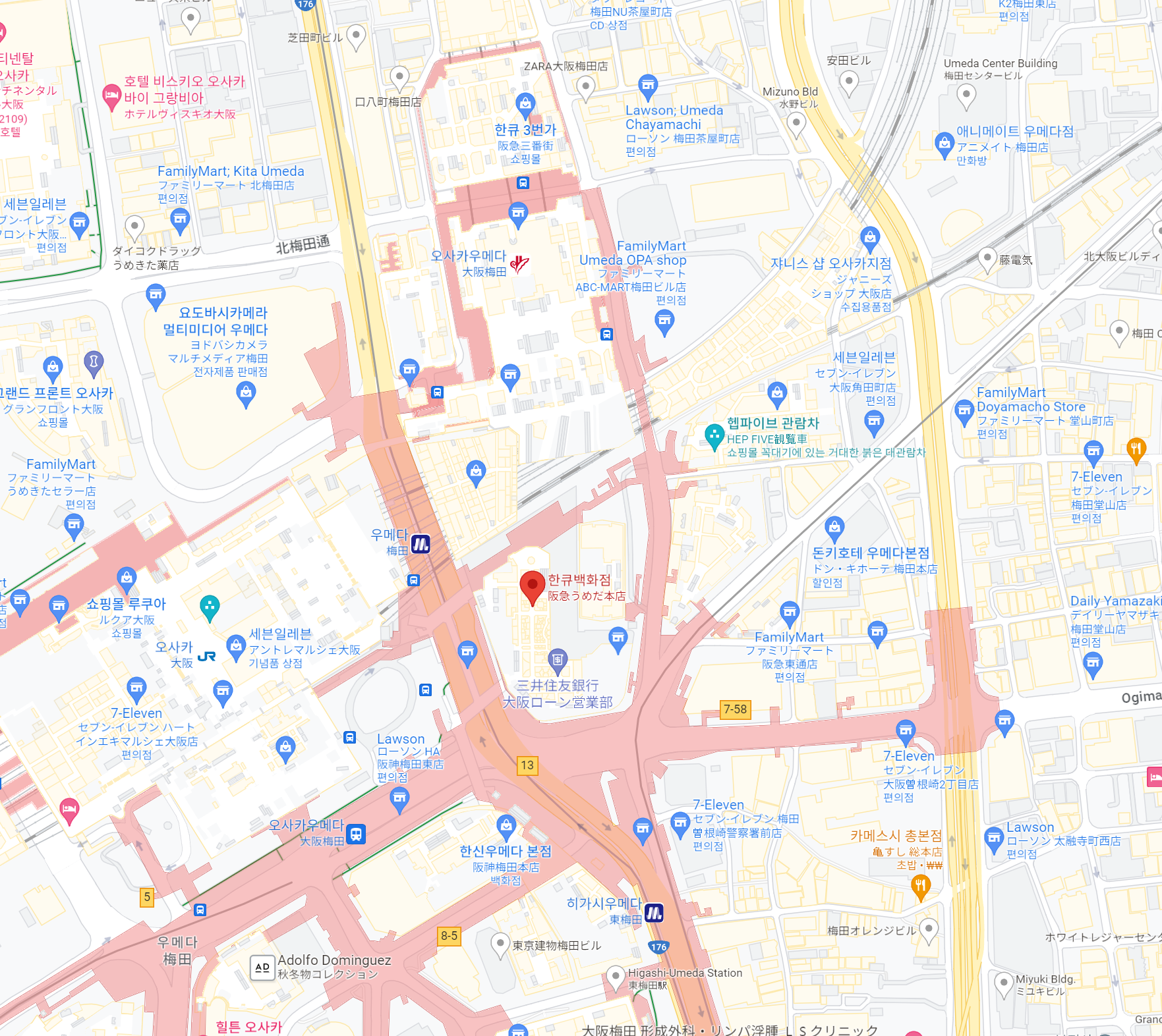 - 위의 지도 좌측위에 파란 글씨로 "요도바시카메라 멀티미디어 우메다" 적혀있기에 지도는 생략한다.