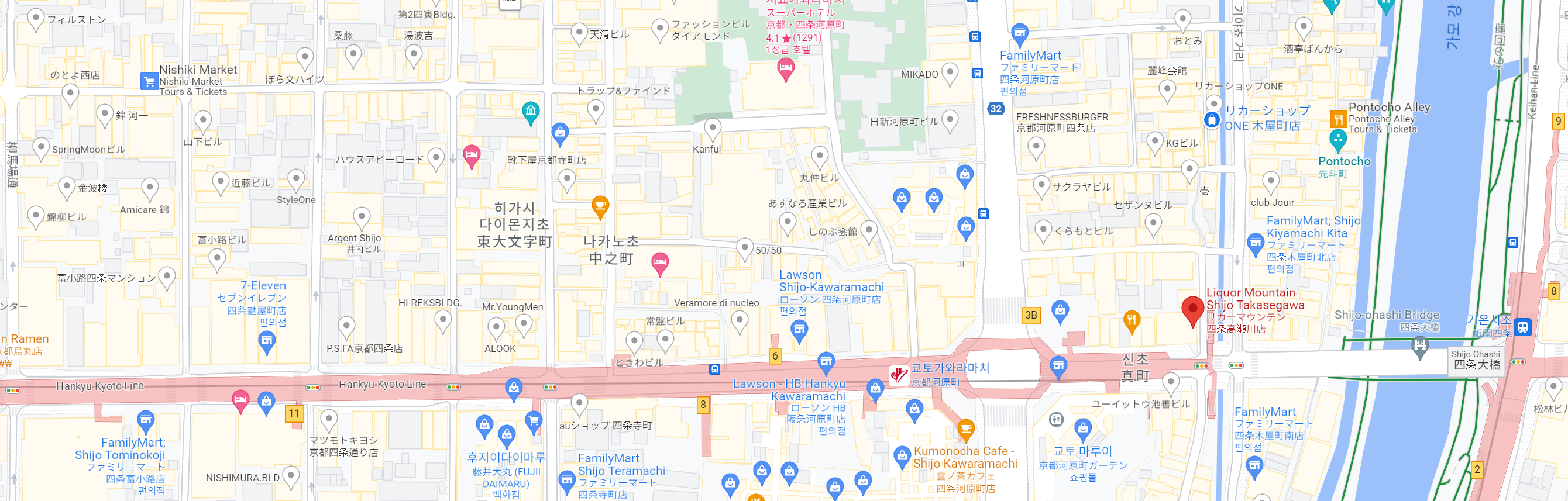 - 위의 점포는 교토 여행을 간다면 한번씩 코스에 넣는 니시키 시장(Nishiki Market/錦市場)에서 기온 거리쪽으로 넘어가는 곳에 위치를 하고 있어서 여행 동선에 크게 영향을 주지 않고 슬쩍 들러 볼만한 점포이다. 다만 정말 동네 편의점 수준의 크기이니 실망하지는 마시길...