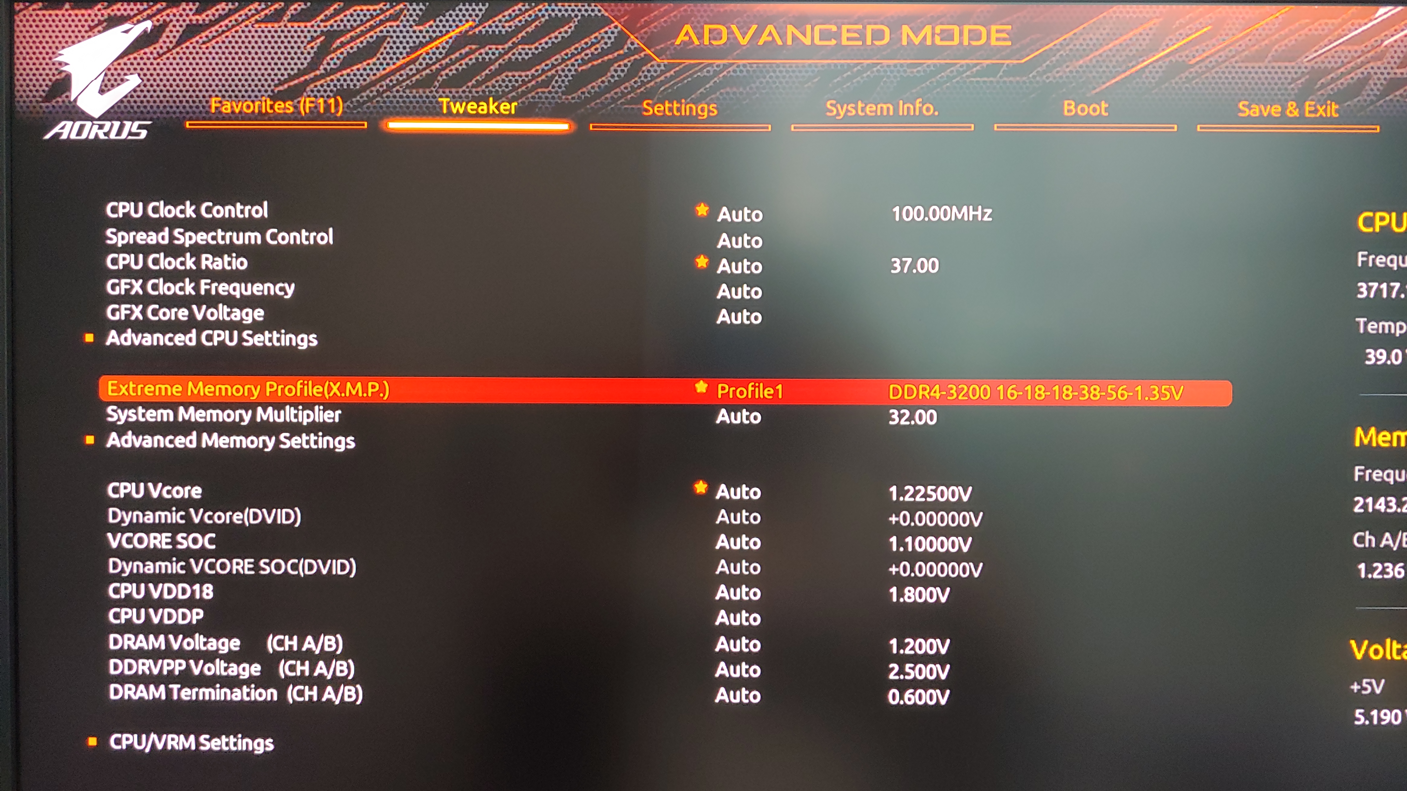 메모리가 X.M.P를 지원하니 메모리만 3200으로 오버해주는군요.