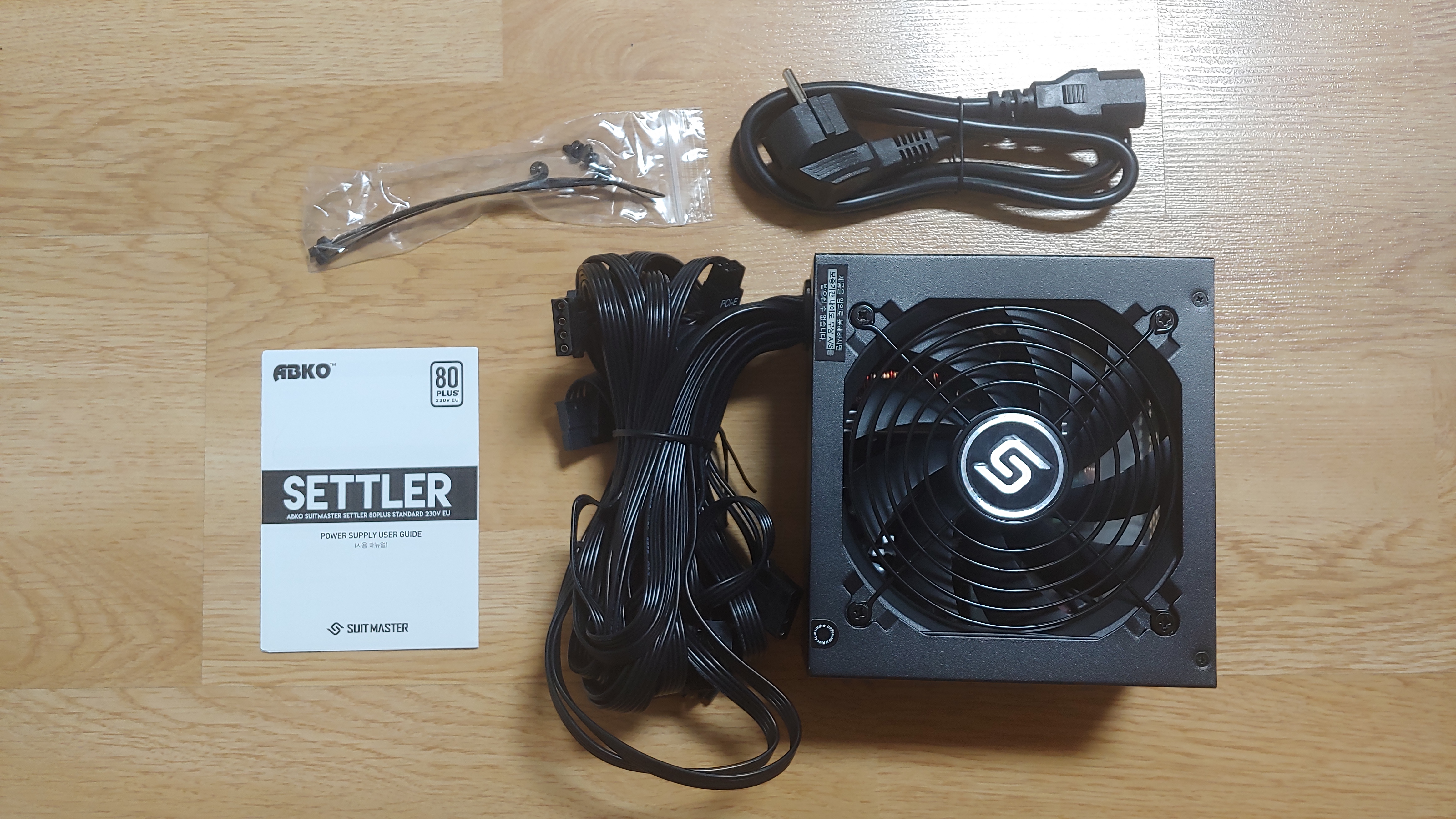 구성품은 파워 본체, 전원 케이블, 사용 메뉴얼과 설치 나사 그리고 선정리를 도와줄 케이블이 들어 있습니다. 조금 오래되기는 했지만 예전에 파워서플라이를 구입했을 땐, 선정리 케이블이 없었는데요. 작은 점이지만 개인적으로는 감동(?) 받았습니다.