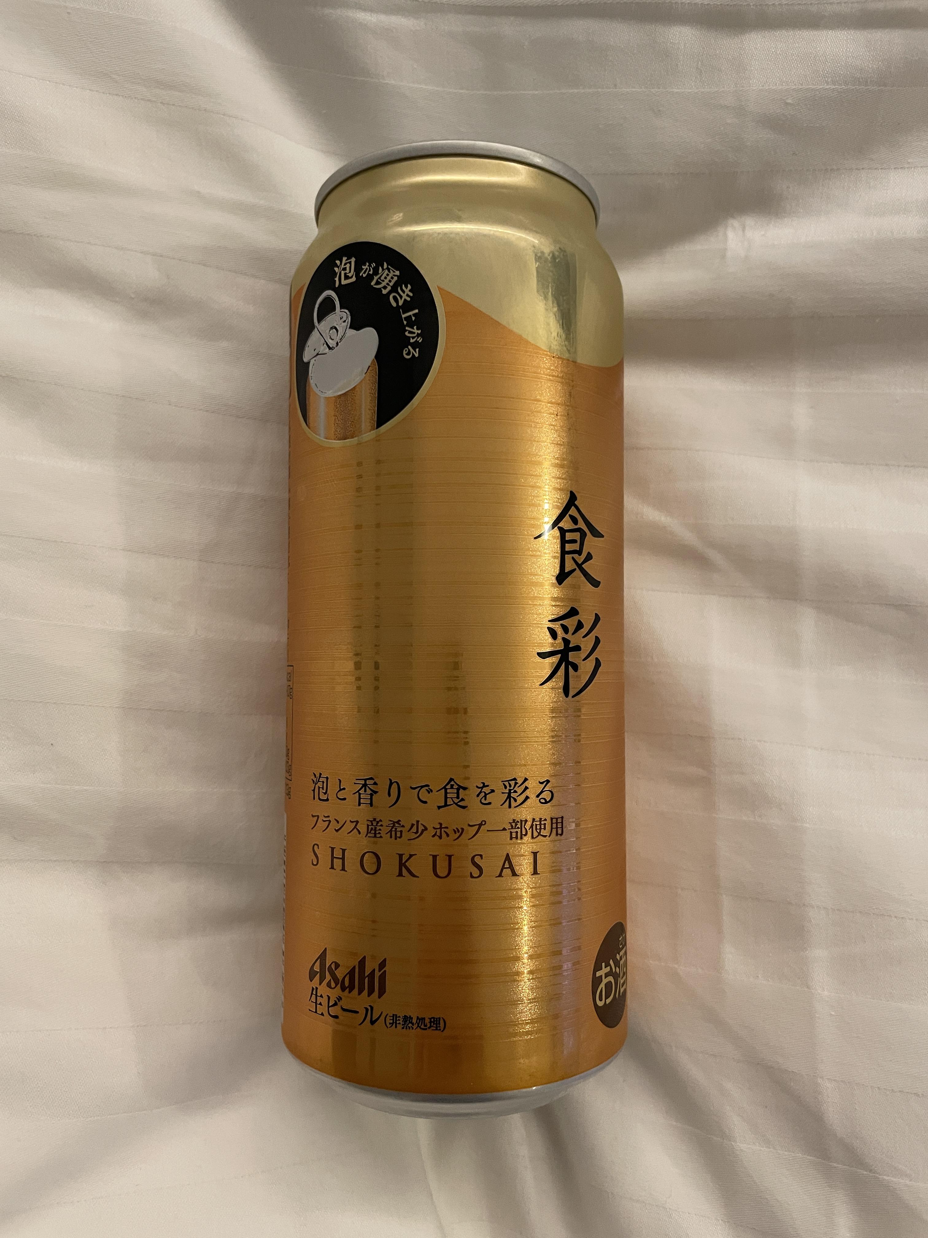 이번 맥주의 이름은 쇼쿠사이 (食彩) 슈퍼드라이가 깔끔하고 시원한 라거라면 이번 맥주는 홉이 들어간 스타일의 향이 풍부한 맥주이다. 아사히의 광고 문구등을 보았을 때 반주를 생각하고 만든 맥주처럼 보였다. 마셔보니 애일까지는 아니지만 홉이 들어간만큼 조금은 더 진한 향과 맛이 느껴졌다.